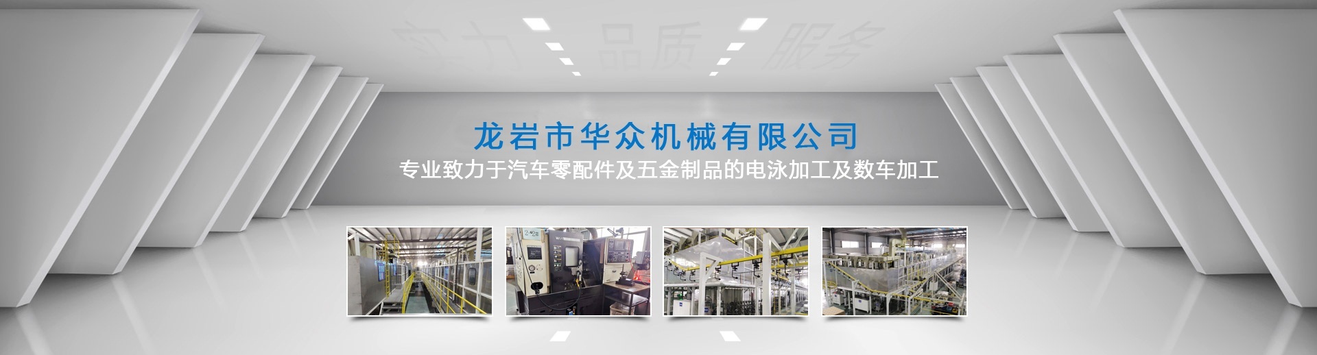 About us龍巖市華眾機械有限公司成立于2010年12月,新廠位于福建省龍巖市新羅區東寶工業集中區,注冊資本3000萬元,占地27000平方米,員工60多人,是一家專業從事電泳、磷化、數車等加工業務的制造型企業,是國家高新技術企業,擁有三十多項實用新型專利。 我司的電泳技術和品質在華南地區深受客戶信賴。公司擁有20年以上經驗豐富的技術人員和管理人員,擁有全自動電泳生產設備,所采用原料均為美國、德國進口,產品品質能達到國際電泳涂裝標準要求,廣泛應用于汽車零部件、機械配件、電子產品、工藝品等一系列金屬制品。現配套服務于比亞迪、吉利、通用、福特、大眾、豐田、現代等全球知名汽車公司。 2018年8月公司通過NSF-ISR管理評審,獲得IATF16949質量管理體系證書。